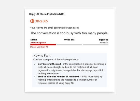在经历了 2019 / 2020 年的两次内部事件之后,微软终于在本周为 Office 365 加入了一个防范大规模“Reply-All”电子邮件风暴的新功能。对于 IT 人员来说,这将有助于其检测并阻止群发邮件中使用的“全部答复”选项(比如企业范围内的一则通知)。
