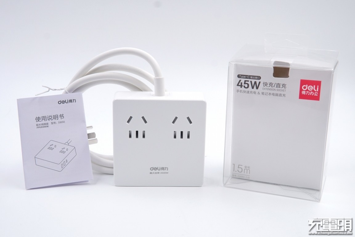开箱物品一览,说明书x1、得力45W PD插线板x1。