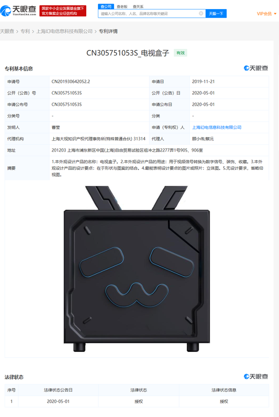 天眼查专利数据显示,近日,哔哩哔哩旗下公司上海幻电信息科技有限公司于5月1日申请公布的外观专利“电视盒子”已成功授权,申请日期为2019年11月21日。据悉,该专利用于视频信号转换为数字信号、装饰、收藏。