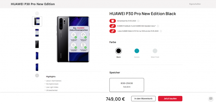 目前这款旗舰将于5月31日在德国发售,首批下单用户可以获赠FreeBuds 3真无线耳机以及华为CM-510迷你蓝牙音箱,还能以99欧元(约合人民币760元)价格购买华为Watch GT2。