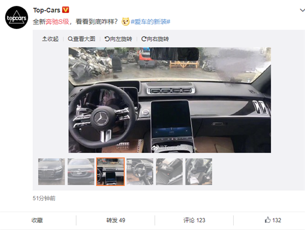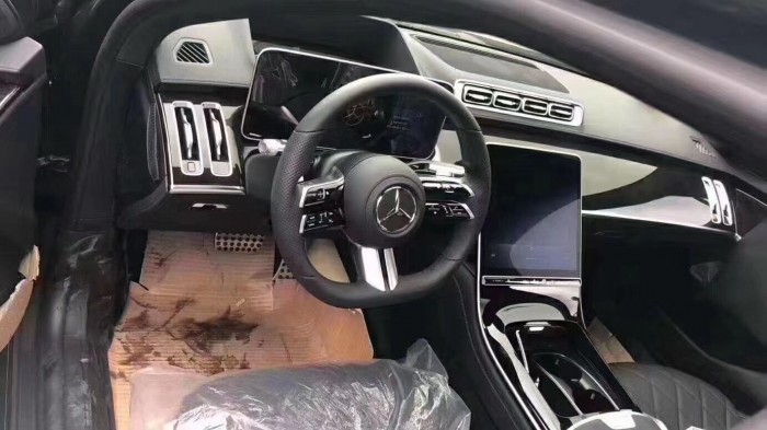 作为老板专用车,内饰是全新S级的精华所在。新车放弃了现款车型广受好评的“iPhoe 17”大连屏设计,转而采用了分体式屏幕,而液晶仪表前方的“大坑”疑似为HUD。