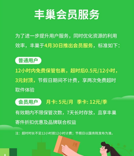 因为一个“五毛钱”的收费,丰巢和它服务的用户之间的裂痕在扩大。4月底,丰巢宣布推出会员服务,按照丰巢的规则,如果不买会员,用户最多可以免费保存包裹12小时,超时后每12小时要收取0.5元费用,而买了会员之后则可以不限保管次数,7天长时存放。