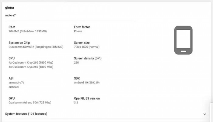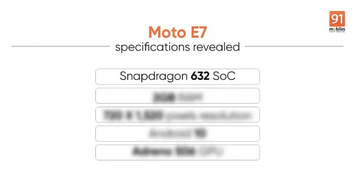 根据Google Play Console的上市信息,Moto E7将采用骁龙632 SoC,搭配Adreno 506 GPU和2GB RAM,但也可能会有其他的衍生机型。