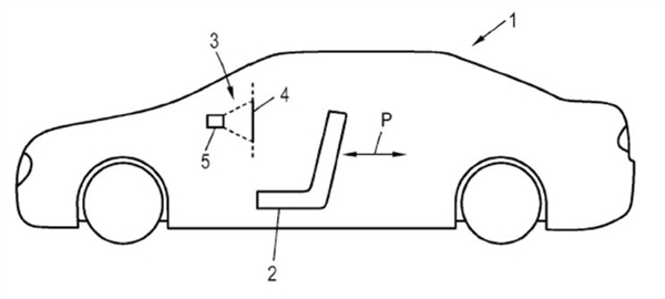 如专利图所示:投影仪5将内容投射到投影屏4上,在驾车时驾驶员可以观看。而当驾驶员将座椅2进行前后调整时,投影屏4会根据距离和角度,在其轨道上进行尺寸增大缩小以及角度变换等操作,继而改变显示屏的尺寸和显示角度,方面车内乘员在不同角度进行观看。