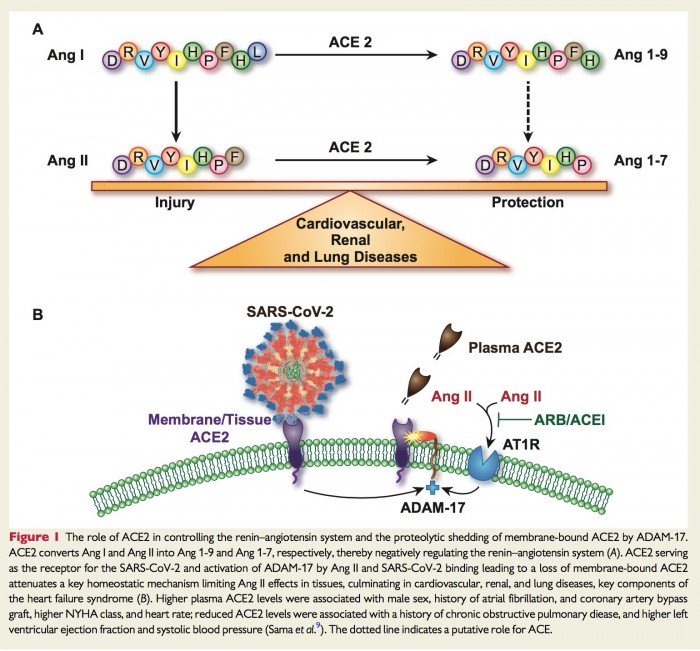 荷兰格罗宁根大学医学中心的心脏病学教授Adriaan Voors博士是这项新研究的负责人,他在谈到研究结果时指出:“ACE2是细胞表面的一种受体。它会跟冠状病毒结合并在被细胞表面另一种叫做TMPRSS2的蛋白质修饰后允许病毒进入并感染健康细胞。肺中存在高水平的ACE2,因此,它被认为在与新冠肺炎相关肺部疾病的进展中发挥了至关重要的作用。”