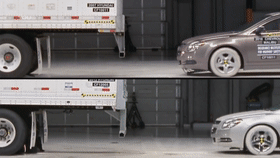 据悉,此前,IIHS使用雪佛兰迈锐宝作为后方追尾车辆,已56公里的时速、30%的重叠碰撞追尾Great Dane、Utility和现代挂车,结果均以失败告终,假人驾驶员“壮烈牺牲”。