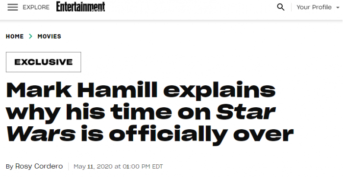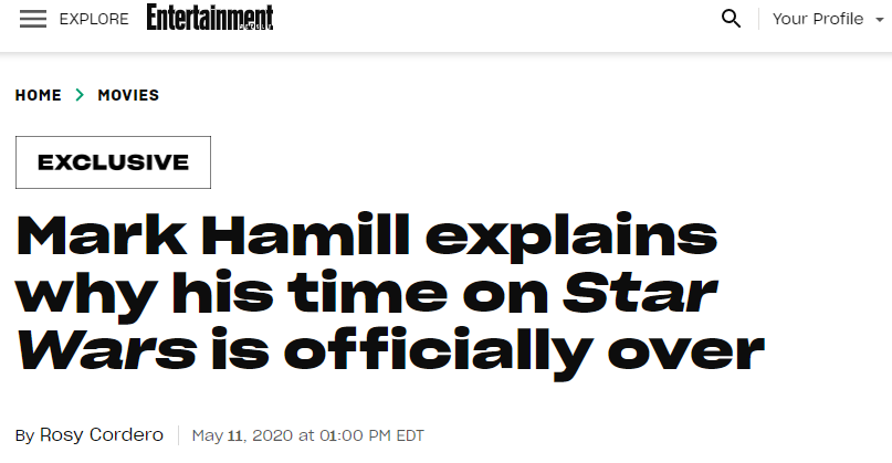 Mark Hamill本人在近日接受《娱乐周刊》采访时亲口证实,他在《星球大战》系列中扮演卢克·天行者的时代已经正式结束。这意味着即使以后卢克以各种形式出现在未来《星球大战》系列作品中,他也将不会再次回归出演。