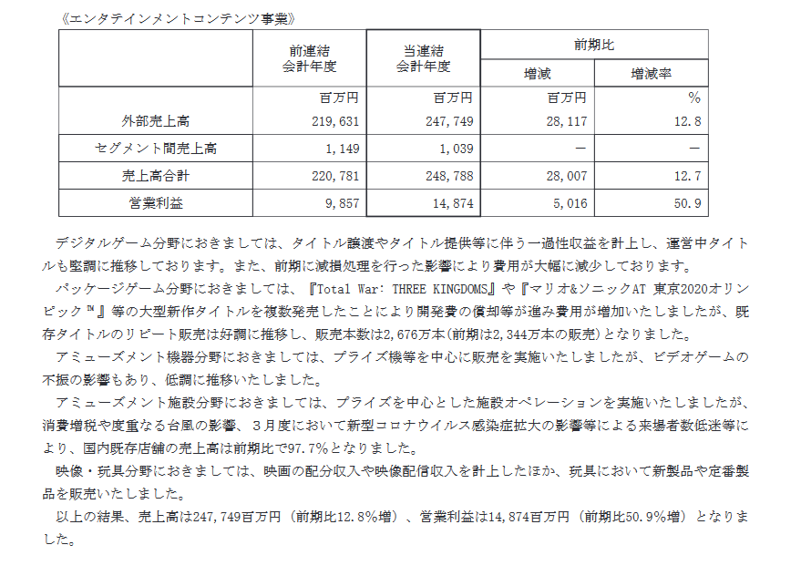 感兴趣的玩家也可以点击此处查看世嘉此次公开的财报内容。