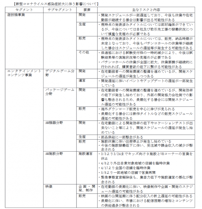 世嘉官方还在财报中表示,由于受到新冠病毒疫情的影响,世嘉旗下的多个领域都收到了一定的影响和冲击。目前已经让职工在家办公,但是开发效率比较低下,如果情况继续延续下去,很多新游戏可能会延期上市。