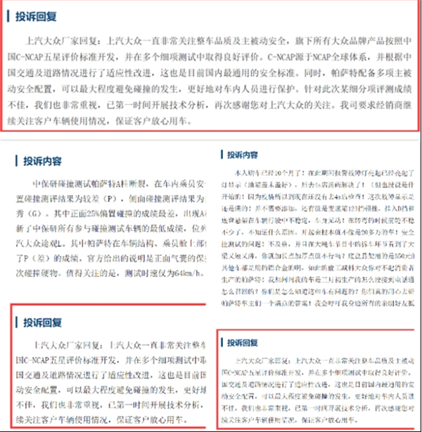今年3月份,沉默了2个多月的上汽大众在车质网上回应车主称:所有大众品牌产品按照中国C-NCAP五星评价标准开发,针对此次某细分项评测成绩不佳,已第一时间开展技术分析。