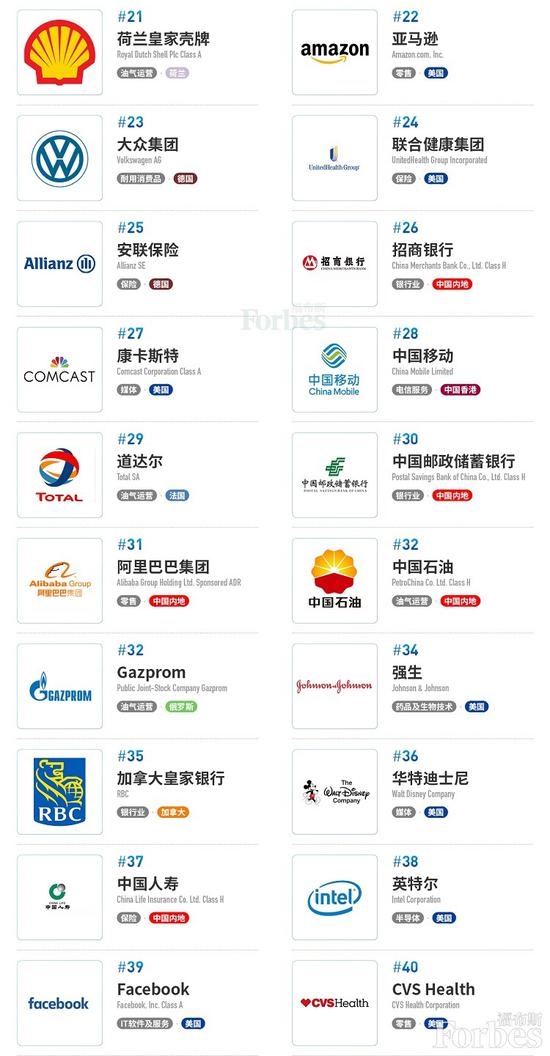 前十名中,沙特阿美今年初次上榜,与中国农业银行并列第5位。前十名企业还包括:伯克希尔哈撒韦(第4位)、中国平安(第7位)、美国银行(第8位)、苹果(第9位)。