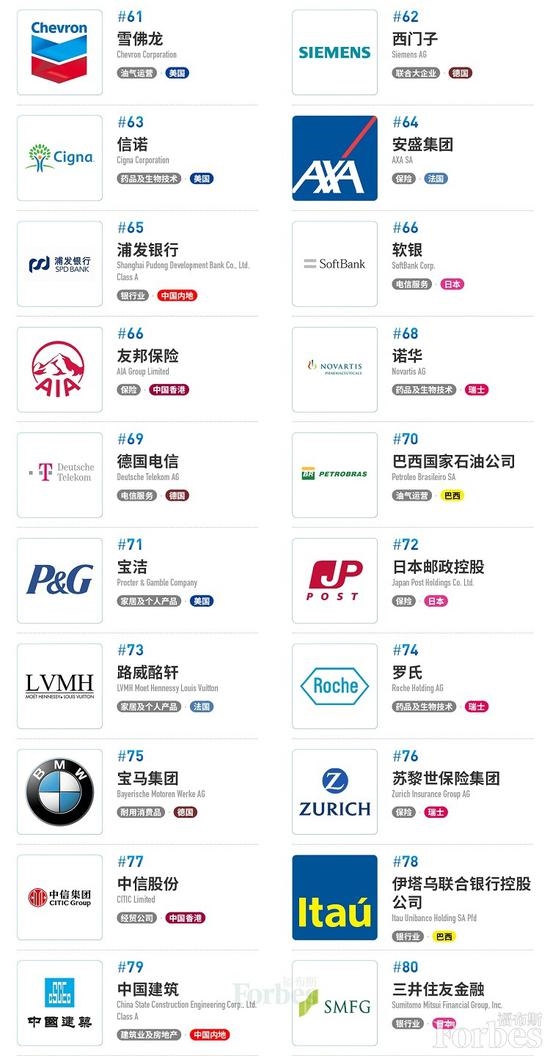 全球企业2000强榜单TOP100: