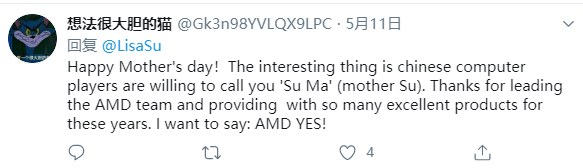 有意思的是,在苏姿丰的帖子下面,有中国玩家还提到了苏姿丰在中国的另一个称呼——A饭称她为“苏妈”,这倒是跟母亲节有点意思了。