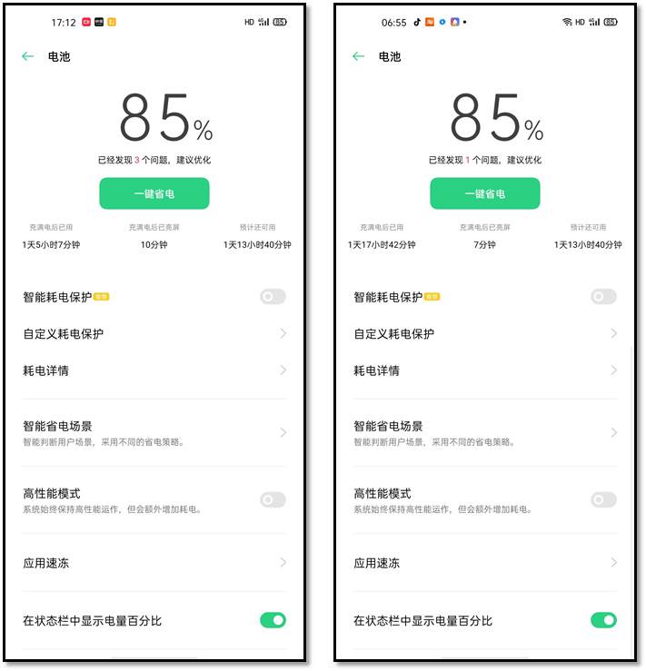 测试结果显示,应用系统级统一推送通道后,充满电后到电池使用至85%,待机时间为41小时42分钟;应用后台自启动并自建通道方案,充满电后到电池使用至85%,待机时间为29小时7分钟。