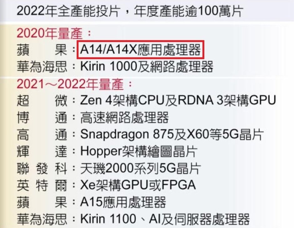 到 2021 年,台积电的 5nm 计划图则包括了高通骁龙 875 移动平台,苹果的 A15 仿生芯片和华为的麒麟 1100 。之后,台积电就会开始测试 3nm 制程的生产。