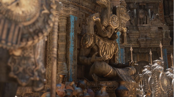 这一品质上的飞跃得益于无数团队的努力和技术的进步。为了使用Nanite几何体技术创建巨型场景,团队大量使用了Quixel的MegaScans素材库,后者提供了具有成百上千万多边形的影视级对象。为了支持比前世代更庞大更精细的场景,PlayStation 5也大幅提升了存储带宽。该演示还展示了现有的引擎功能,包括Chaos物理与破坏系统、Niagara VFX、卷积混响和环境立体声渲染。