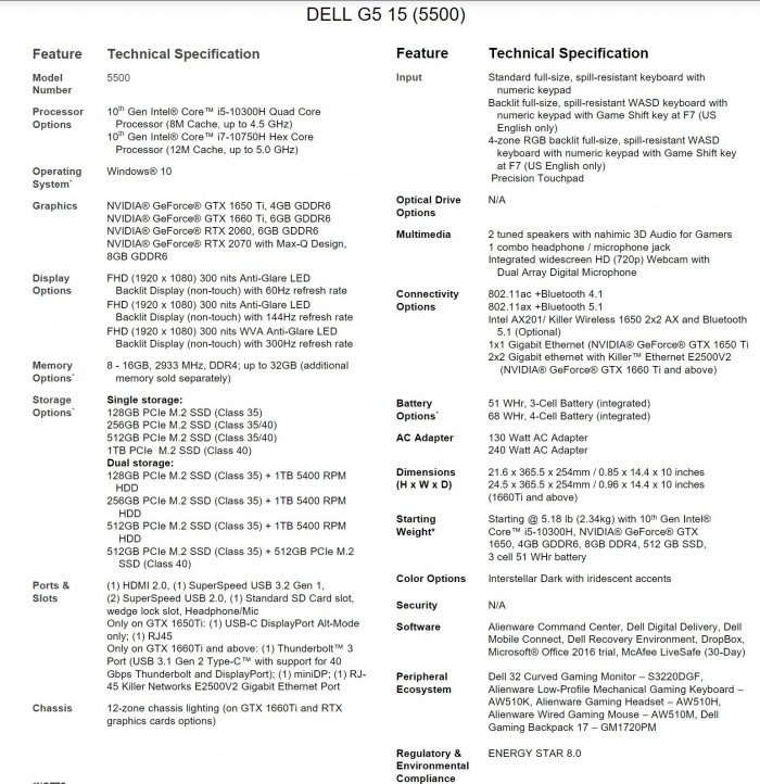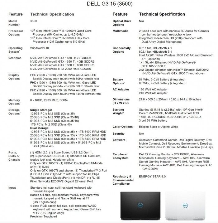 戴尔G3将于2020年5月21日上市,起价779.99美元,而戴尔G5将于2020年5月21日上市,起价829.99美元。下面就是这几款笔记本的规格。