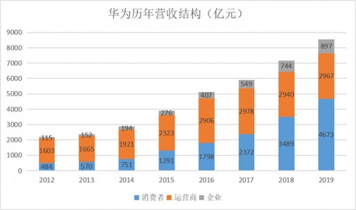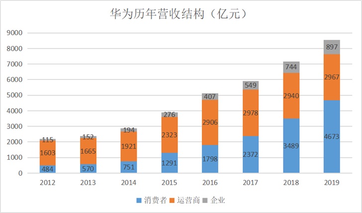 除了运营商业务之外,消费者业务也是华为收入的重要支撑。并在近两年逐渐超越运营商业务,成为华为最大的收入来源。