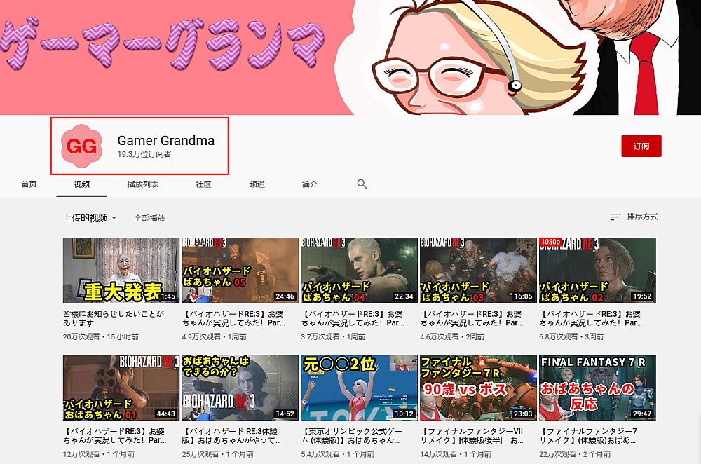 Hamako Mori(频道名称为Gamer Grandma)目前已经是官方公认的世界最年长YouTube游戏主播。Hamako Mori出生于1930年2月18日,现年90岁,目前她的个人YouTube频道拥有超过19.3万的粉丝。