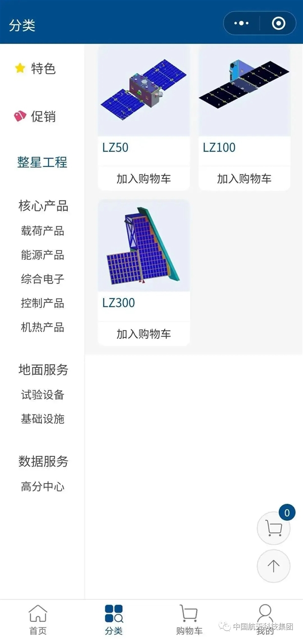 今日,中国航天科技集团在其官方平台上发文称,注册并登录,中国航天科技集团有限公司,八院509所利正公司的网上商城后,符合条件者,就可把卫星产品与服务、应用加入购物车!直接在手机上完成“买”卫星的操作。从其平台商城的介绍可知,用户可以订购的卫星最小50公斤级起步,还可选购100、300公斤级的微小卫星整星产品。并利用卫星的核心性能与产品,进行各种地面试验与数据服务。