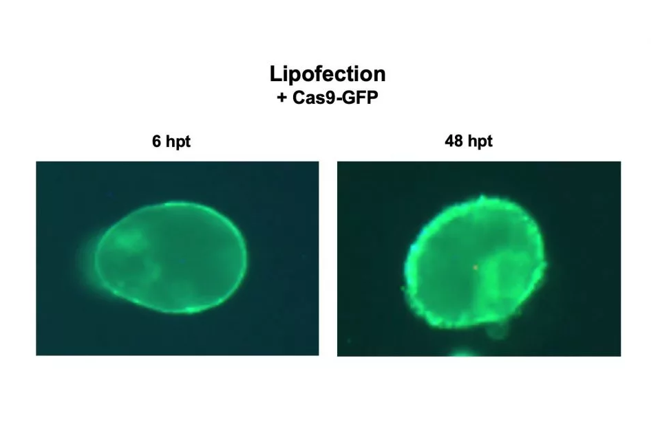 在新研究中,研究人员对这一过程进行了调整,在植物中进行了“更清洁”的编辑。它使用了一种被称为“脂质转染”(lipofection)的过程,在这个过程中,正电荷脂质被用来在Cas9和RNA机制周围建立一种“气泡”。当注入生物体后,这个“气泡”会与细胞膜结合并融合,将CRISPR系统推入细胞本身。该方法还使用了Cas9蛋白本身,而不是Cas9 DNA序列。该团队通过将荧光蛋白引入烟草植物中,对该方法进行了测试。果然,48小时后,经过编辑的植物细胞发光了,说明它发挥了作用。