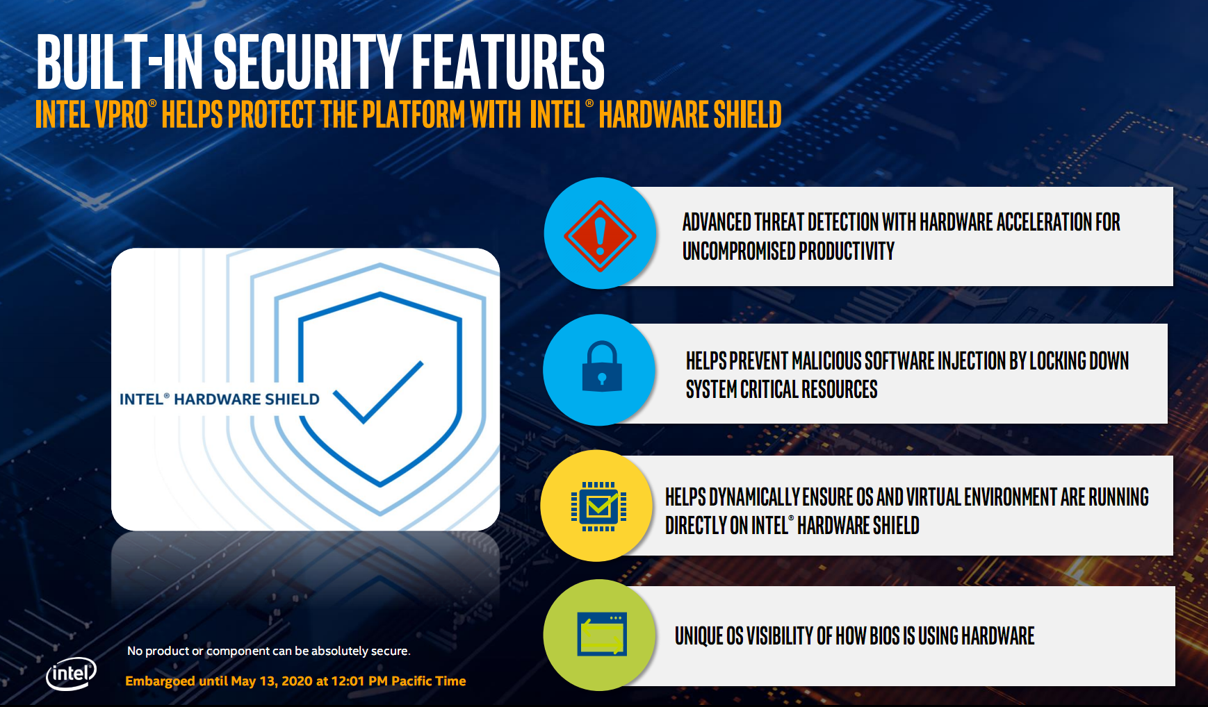 安全方面,新一代博锐平台重点拓展了Hardware Shield,从可选功能变为标准配置。它可以提供内置的硬件增强安全功能,帮助防止网络攻击,现在新增支持高级威胁检测、扩展的操作系统下保护功能,有助于保护系统内存关键资源。