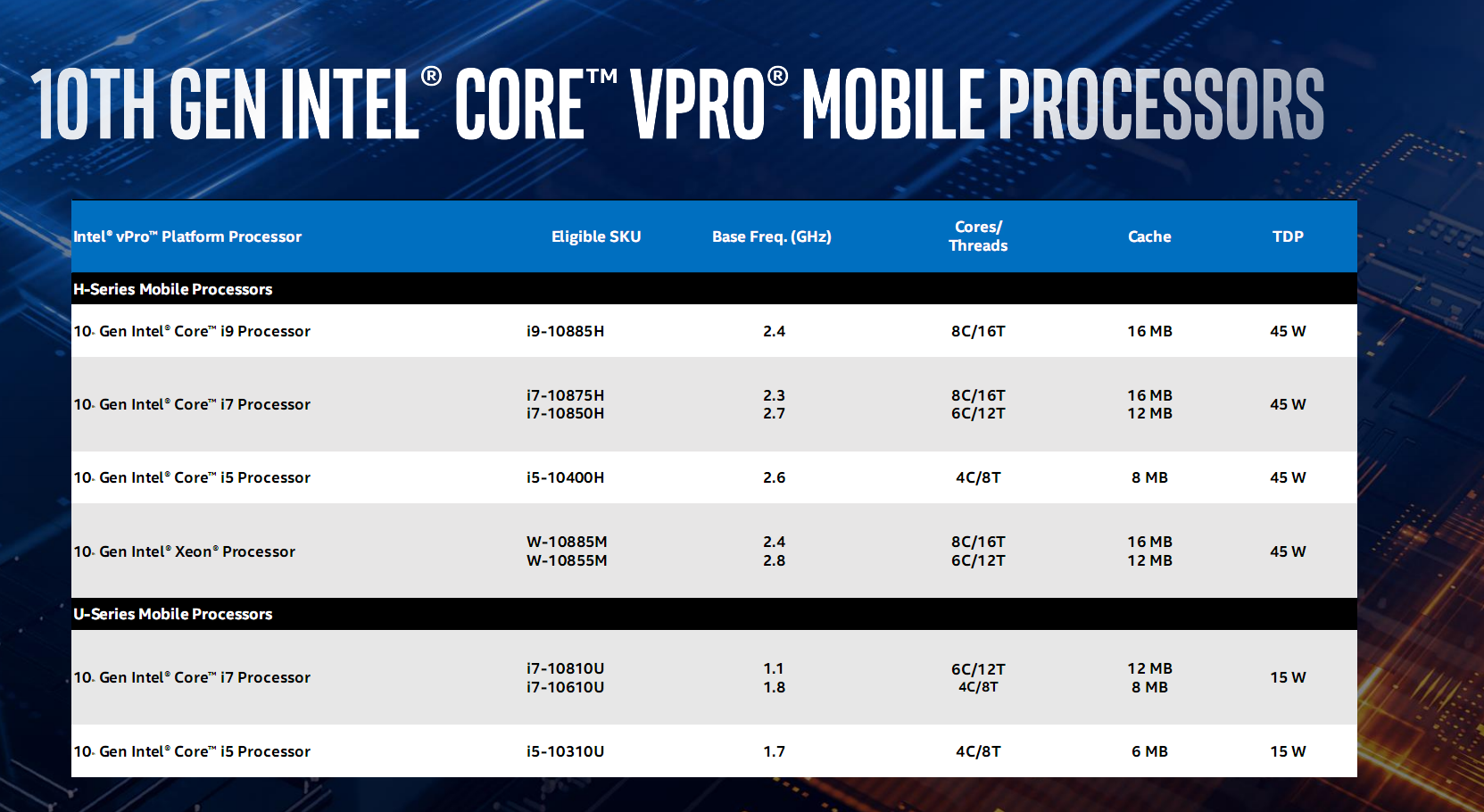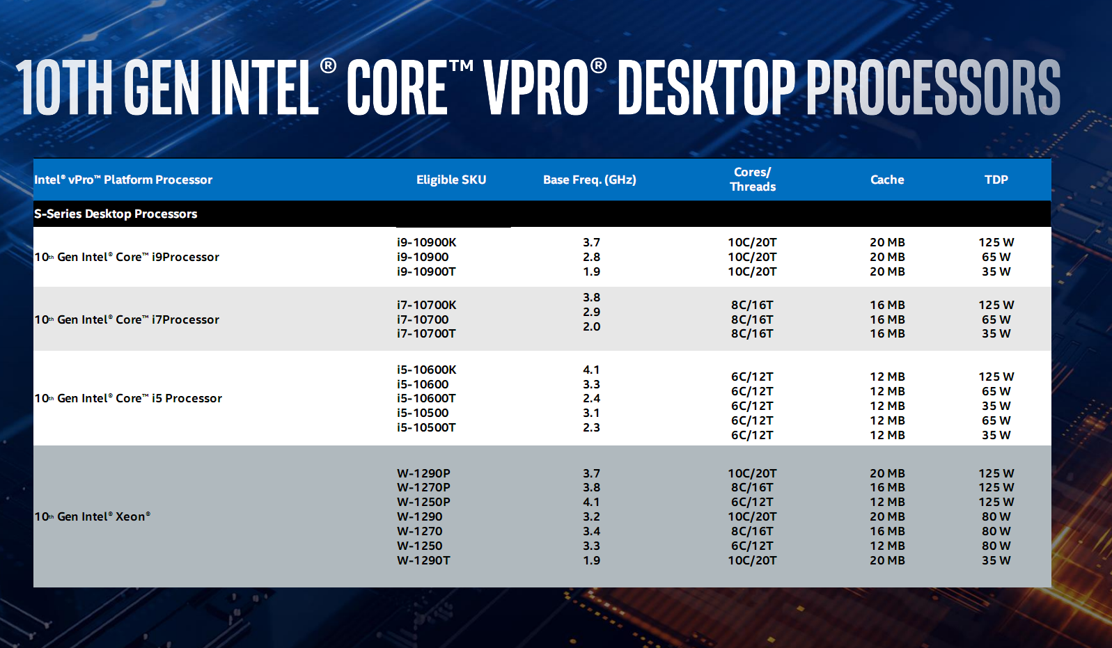 5月13日,Intel正式发布了全新的第十代商用博锐平台,包括酷睿、至强两大产品线,总计多达32款不同型号,是博锐历史上发布规模最大的一次(十代酷睿桌面S系列也是32款),面向商务台式机、商务笔记本、桌面工作站、移动工作站等各个领域。