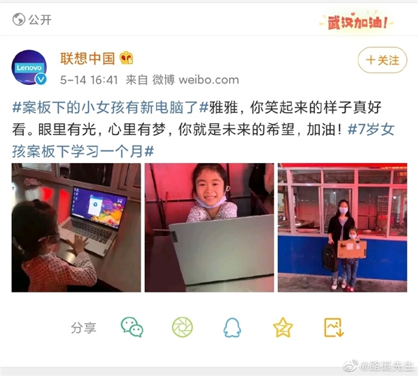 有网友发现,联想给小女孩赠送的是小新Air 14笔记本。