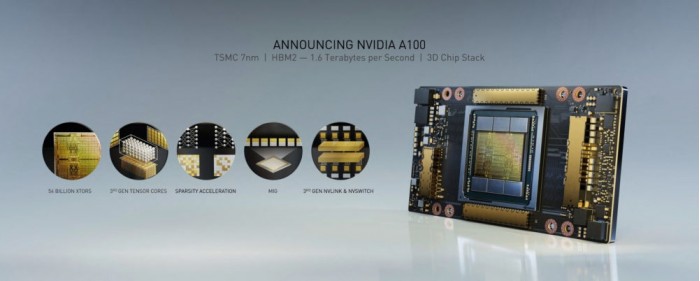 常规的FP32、FP64性能提升倒是不算明显,从V100核心的15.7.、7.8TFLOPS提升到了19.5、9.7TFLOPS。