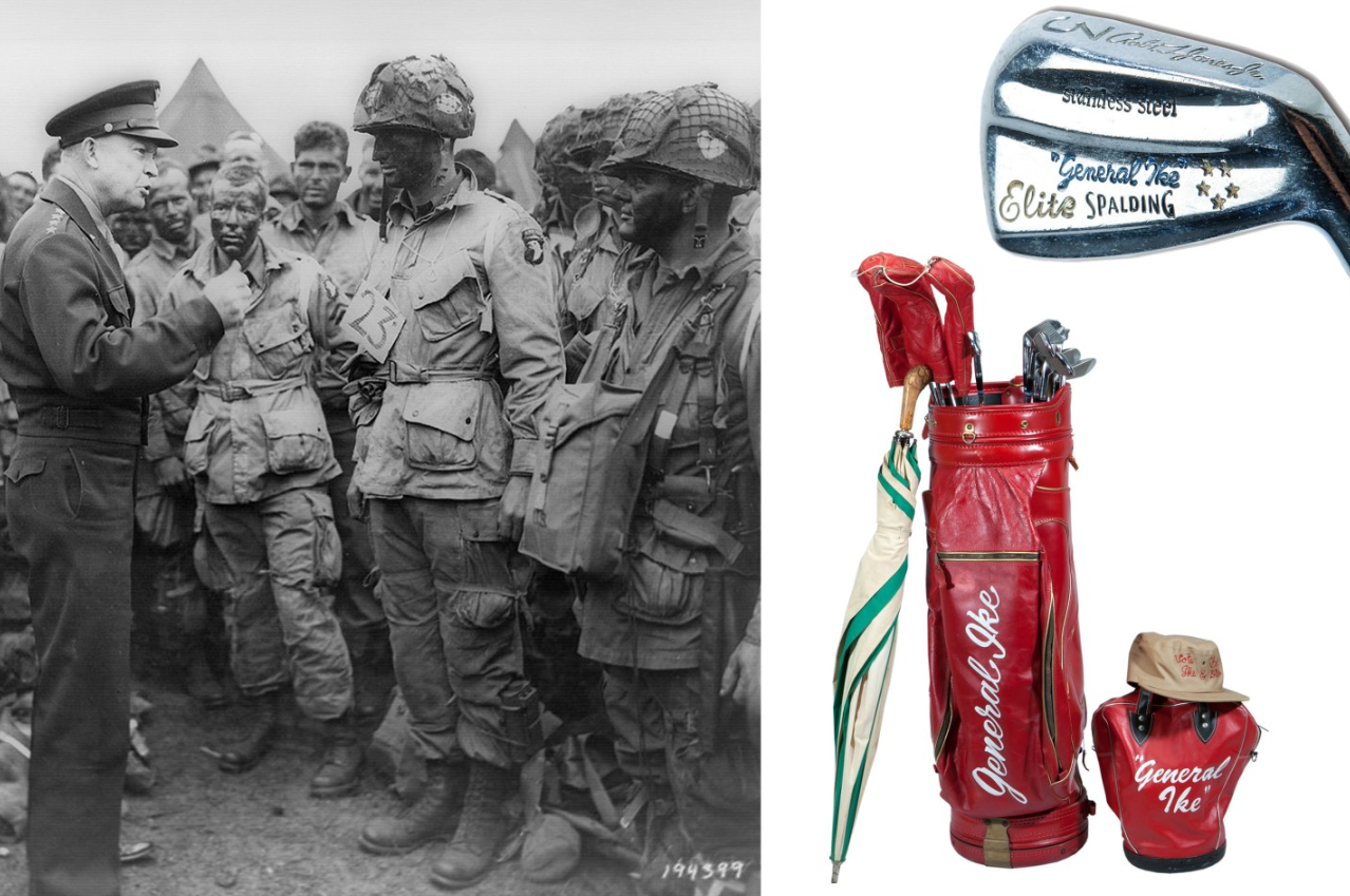 德怀特·戴维·艾森豪威尔是二战期间盟军驻欧洲远征军最高指挥官,1953年至1961年成为美国第34任总统。艾森豪威尔非常喜欢打高尔夫球,他有一个定制的高尔夫球包和一整套刻有 "艾克将军"(Serial #1AAAAAAAA)的斯波尔丁球杆,他把它保存在奥古斯塔。2015年由SCP Auctions拍卖公司拍卖时,这套球杆拍出了121,122美元的高价。
