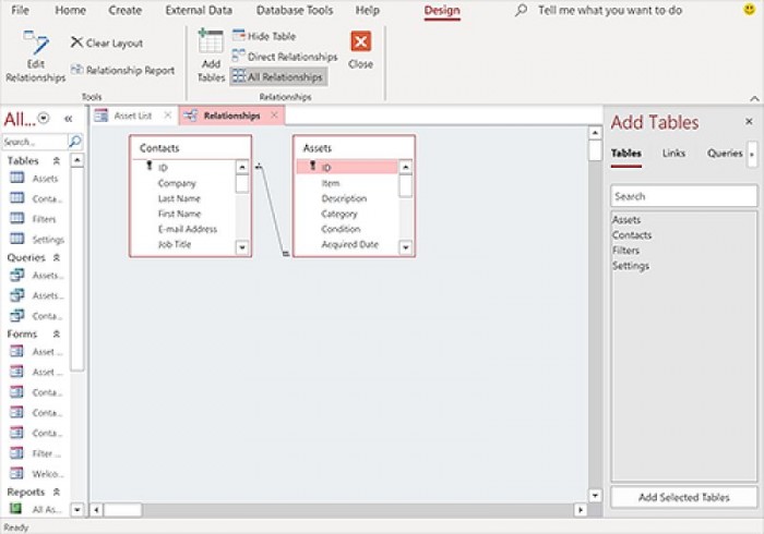 在Access中,导航表和查询以建立关系变得更加容易了新的 "Add Tables "窗格将提高您在开发和查看关系时的工作效率,并提供增强的查询体验。