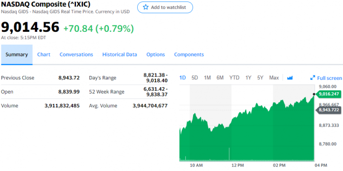 北京时间5月16日消息,市场对重启经济以及疫苗开发进展的信心,拉动美股今天收涨。截至收盘,道指涨60.08点,涨幅为0.25%,报收23685.42点;标普500指数涨11.2点,涨幅为0.39%,报收2863.70点;纳指涨70.84点,涨幅为0.79%,报收9014.56点。