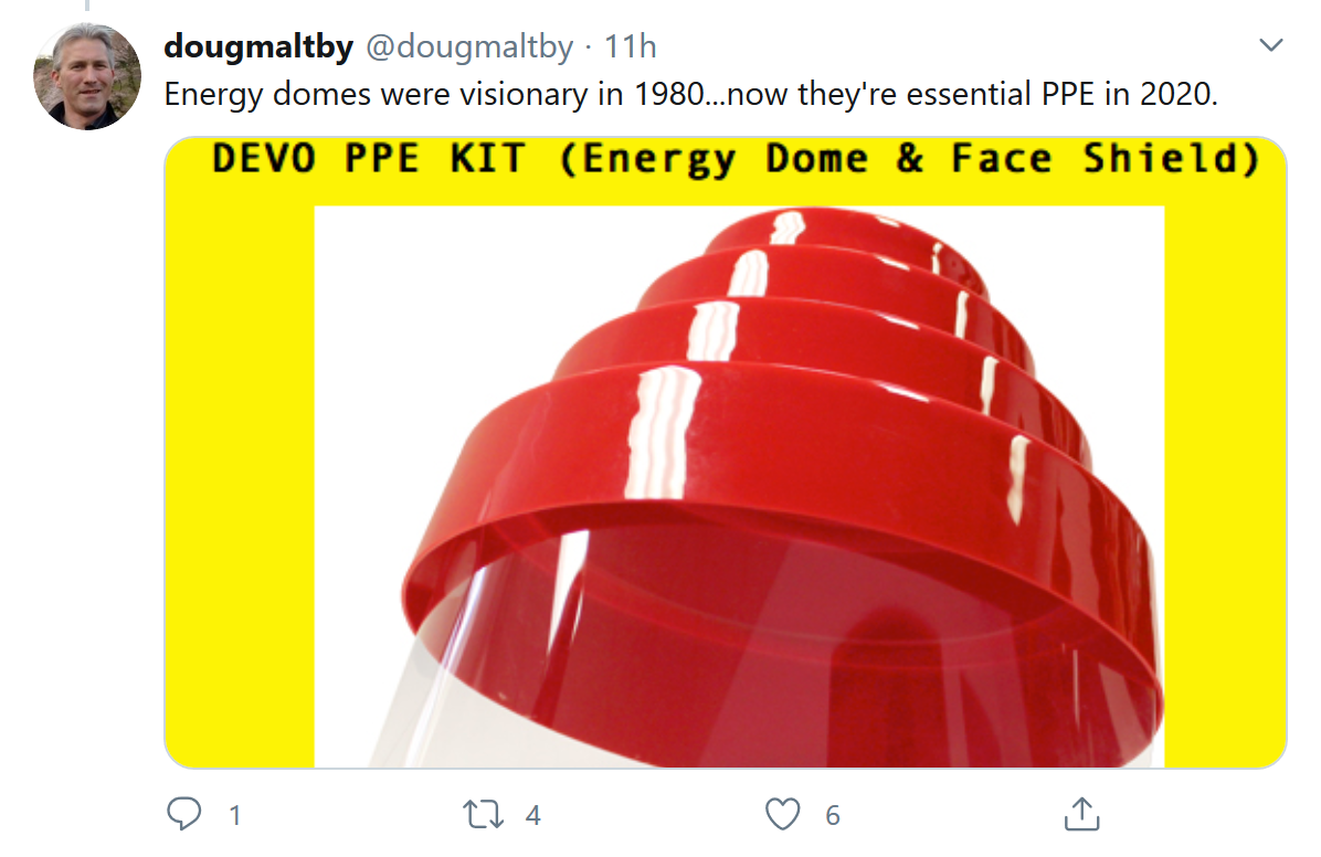 一位用户在Twitter上写道:“能源穹顶在1980年很有远见……现在它们是2020年必不可少的个人防护装备。”