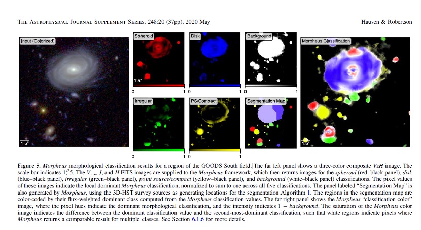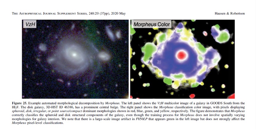 “墨菲斯”的另一大优势是像素级分类。布兰特•罗伯逊介绍,在使用其他模型时,天文学家必须首先知道图像中含有某些内容,然后再向模型提供图像,模型随后对整个星系进行分类;但“墨菲斯”可以帮助天文学家发现星系,而且是以像素为单位,逐一进行分析。这一特性赋予了“墨菲斯”处理复杂图像的能力。