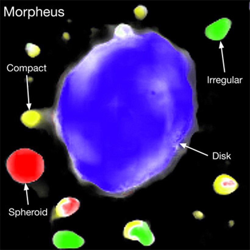 “墨菲斯”对天体进行形态分类后生成的彩色合成图。