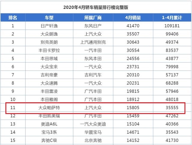据国内最新的四月份轿车销量数据显示,大众帕萨特四月共售出15805辆,销量力压丰田凯美瑞,并仅次于本田雅阁的18912辆,成为国内中型轿车销量榜的亚军。这也着实让不少人感到吃惊。