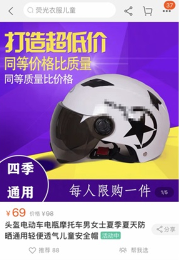 通过电商平台搜索头盔后发现,排列在最前面的有59元、69元款。相较于一天一涨价而言,每人限购一件则更有“杀伤力”,这也从侧面反用了头盔的热销现状。