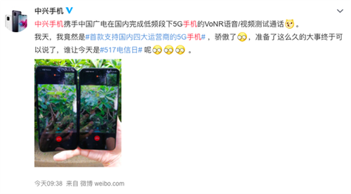 5月17日消息,中兴手机在官方微博发布消息称,中兴手机携手中国广电,在国内完成了低频段下5G手机的VoNR语音/视频测试通话——这就意味着中兴旗下的这款手机成为首款支持国内四大运营商的5G手机。