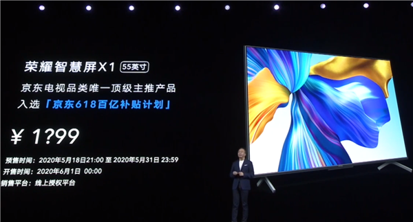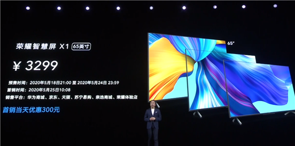 最后是售价,荣耀智慧屏X1 65寸版价格只要3299元,首发当天还优惠300元,到手价2999元,5月25日全渠道开卖。