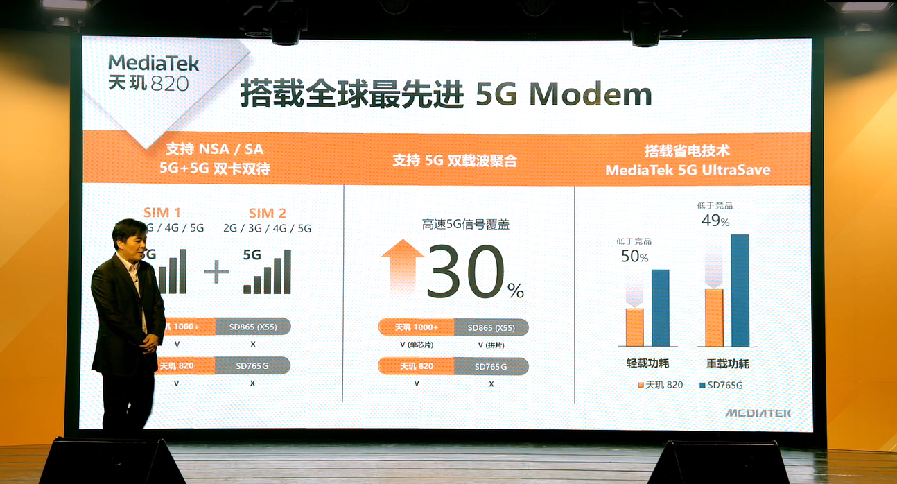 值得一提的是,针对 5G 时代手机能耗不容易控制的问题,联发科在天玑 820 身上引入了 MediaTek 5G UltraSave 省电技术,官方称借助该技术,其最多可以降低 50% 的 5G 功耗。当然,具体到每款手机上这个数字或有所区别,还是要看各家厂商具体调校。