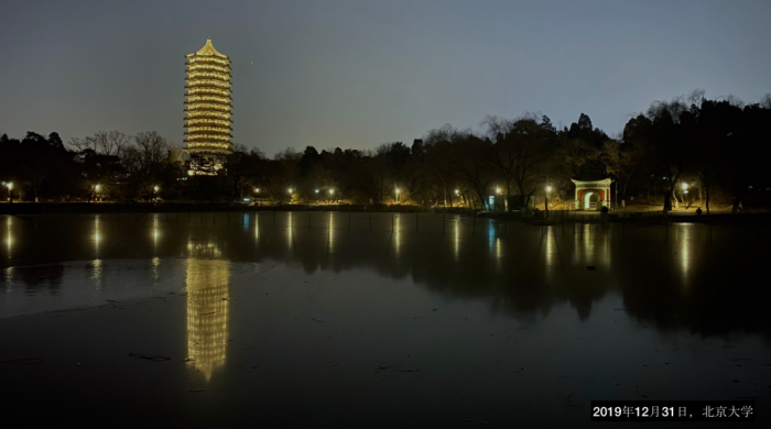 这是2019年12月31日新年钟声敲响之前的两小时,我在北大拍的照片。湖面结了冰,未名湖上的反光,是博雅塔上亮着灯。那一天我比较忙,没有看新闻消息;后来发现有一个新闻,在武汉出现了不明原因的肺炎。等我知道这个消息的时候可能大家都知道了。我不用微博,所以消息来源总是慢半拍。随后几天我们慢慢得到很多新闻消息的推送,我也开始关心这个消息,虽然我当时并不知道这个突发的情况会不会影响到我的生活。大概一周时间之后,肺炎元凶已经确定了,这时候我开始比较关注它了。为什么呢?因为是一个新型冠状病毒,虽然我不懂冠状病毒是什么,但是这里说得到了该病毒的全基因组序列,这个我就有兴趣了,因为我是做测序研究的科研工作者。当我看到从序列来确定病毒的时候,我想这真是很了不起的。从我看到这个新闻,到得到最终结果才过去不到一星期的时间,这是非常难以想象的快速度,仅仅只用了几天时间,我们就确定了新的病原体。