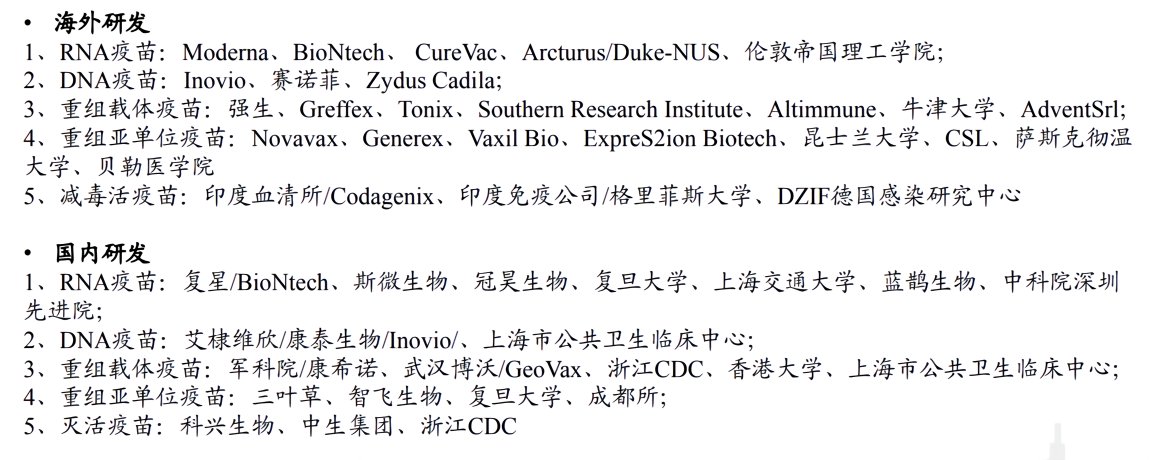 目前,在全球新冠疫苗研发的竞跑赛道上,各大疫苗企业选择的路线各不相同,主要有RNA疫苗、DNA疫苗、灭活疫苗、重组载体疫苗等等。