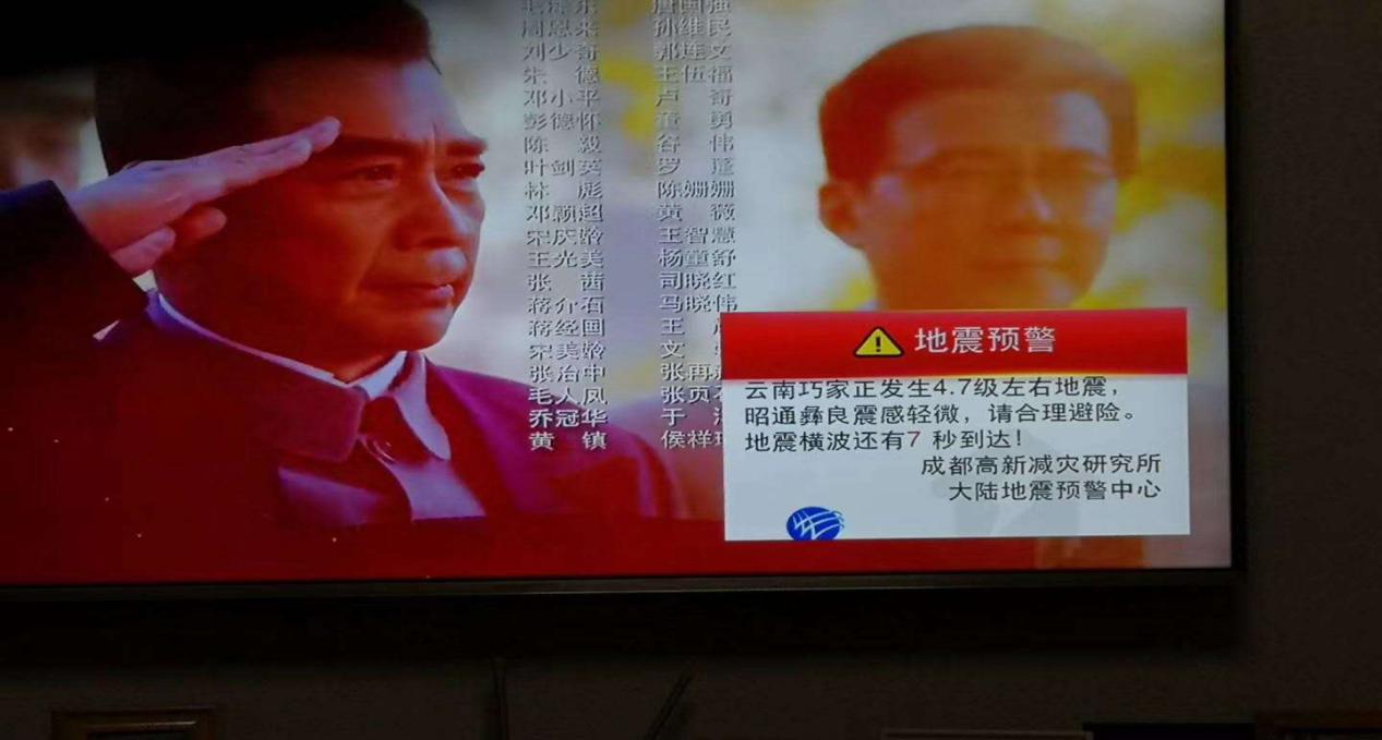 地震预警四川省重点实验室主任、减灾所所长王暾说,去年11月28日,在昭通市应急管理局的授权下,在云南广电、昭通广电部门和广电公司的支持下,昭通广电与该所合作启动了电视地震预警服务,能在电视所在地即将被地震震波波及时,通过电视以大弹窗的形式发出预警,提醒观众地震波到达的倒计时时间和预估强度,并提示民众做好避险、逃生准备,也能在电视所在地周边发生小地震时,以小弹窗提示观众,起到“安定人心”作用。