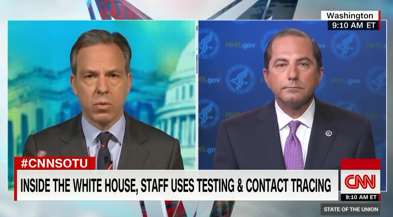 当主持人Jake Tapper试探Azar是否意识到这是他的暗示,即危机变得如此严重是美国人民的错时,Azar回应称:“噢,不,Jake,请不要--请不要歪曲事实--不,这不是你们的错。这是一个简单的流行病学问题,如果我们有高血压、糖尿病,那么我们就会有更大的风险出现新冠病毒引起的严重并发症。这就是我要说的。”