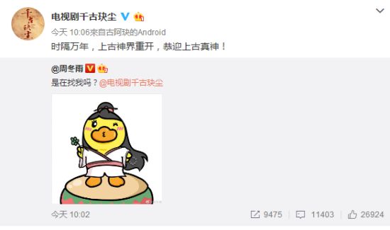《千古玦尘》官宣后,两位主角同官博有爱互动:
