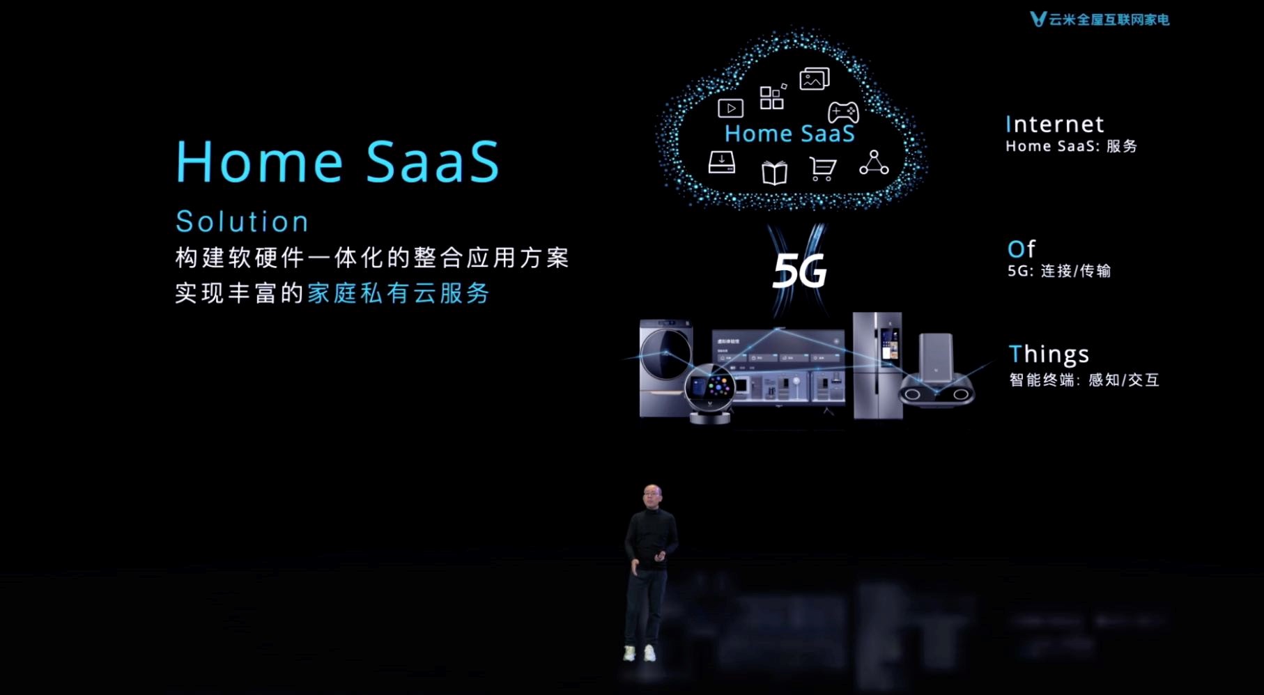 加速“5G+IoT”的深度融合,云米不仅拥有极具智能化的互动智慧屏作为终端,为5G连接以及IoT应用提供云端服务保障的的家庭私有云:Home SaaS也在本次发布会中首次公开亮相!