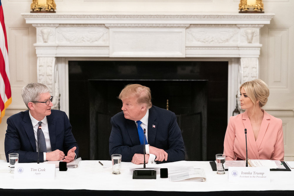 包含库克在内的的白宫咨询委员会还有不少政经界的重要人士,如伊万卡·特朗普、美国商务部长威尔伯·罗斯、洛克希德·马丁公司首席执行官玛丽莲·休森和IBM执行主席金尼·罗梅蒂。