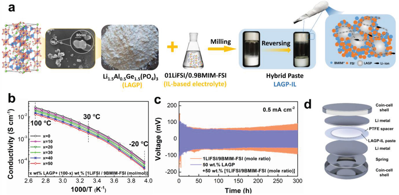 来自瑞典查尔莫斯理工大学和中国西安交通大学的研究人员正在尝试用他们的新型夹层浆料来解决这一缺陷。质地类似于 "冰箱里的黄油",这种物质被涂抹在金属锂阳极的表面,在它和固体电解质之间形成一个过渡层。它由电解质材料的纳米颗粒--一种称为LAGP的陶瓷--与离子液体组成。