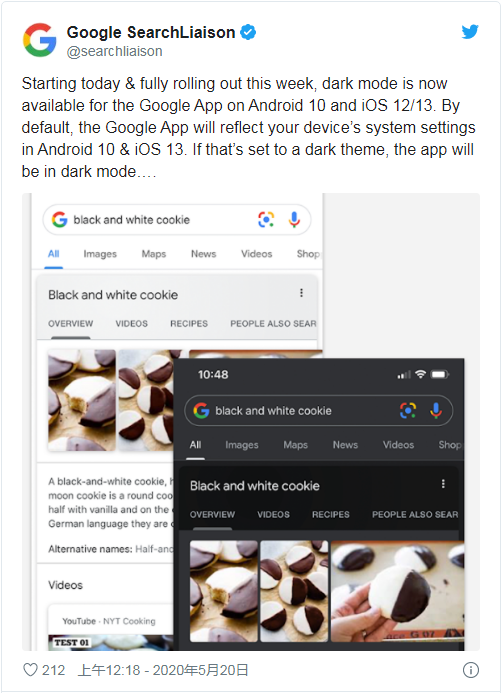 虽然谷歌较早地为自家 Android 客户端引入了黑暗模式,但 iOS 平台的步调却有些缓慢。好消息是,通过一年多的努力,谷歌终于在今日宣布已全面支持 Android 和 iOS 的黑暗模式。即日起至下周,该公司的官方 App 将陆续迎来这方面的更新。