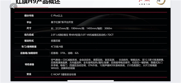 据悉,红旗H9将于6月上市,期待这辆备受好评的中国品牌豪华车售价能给我们一个惊喜。